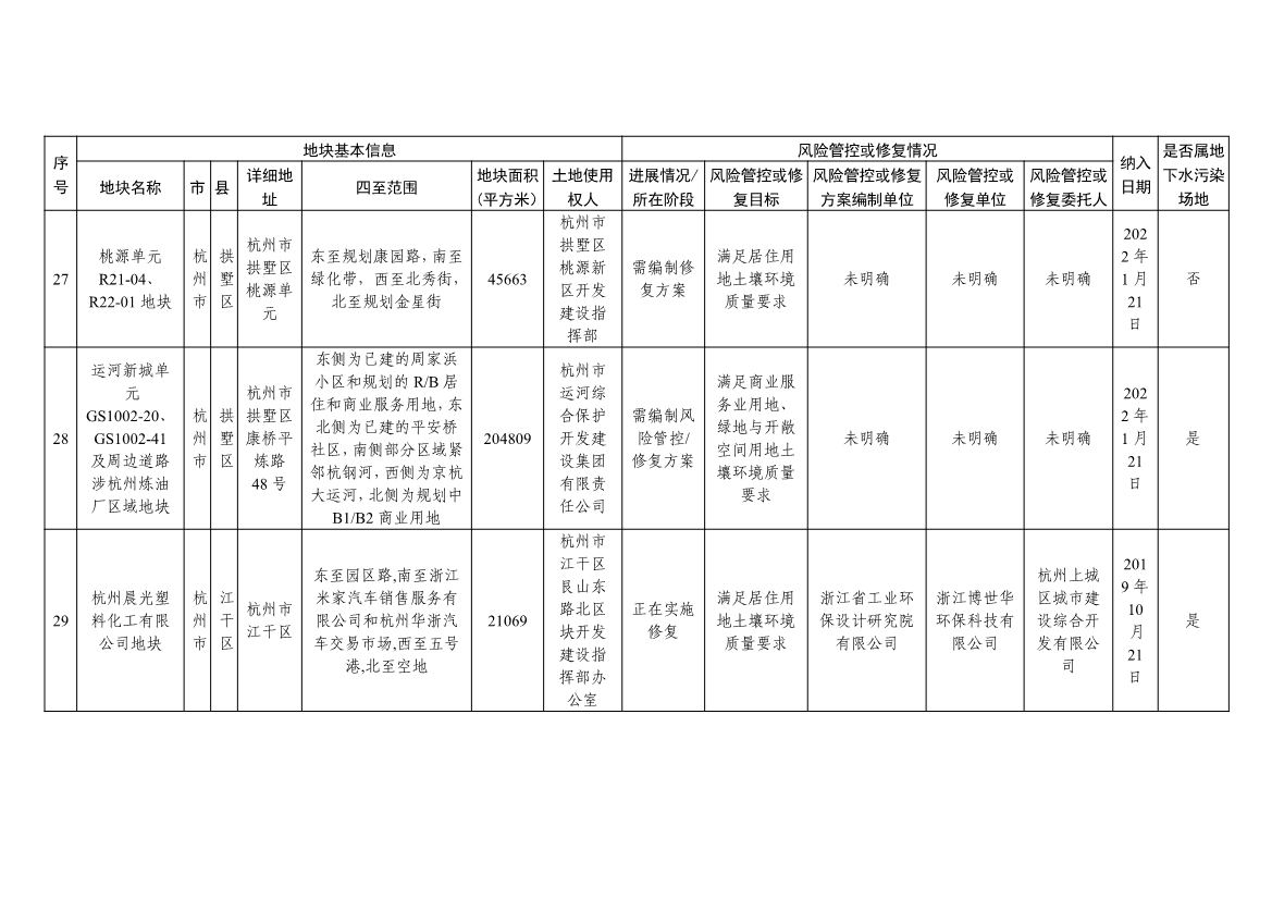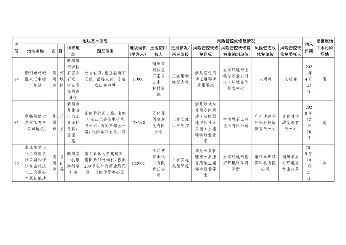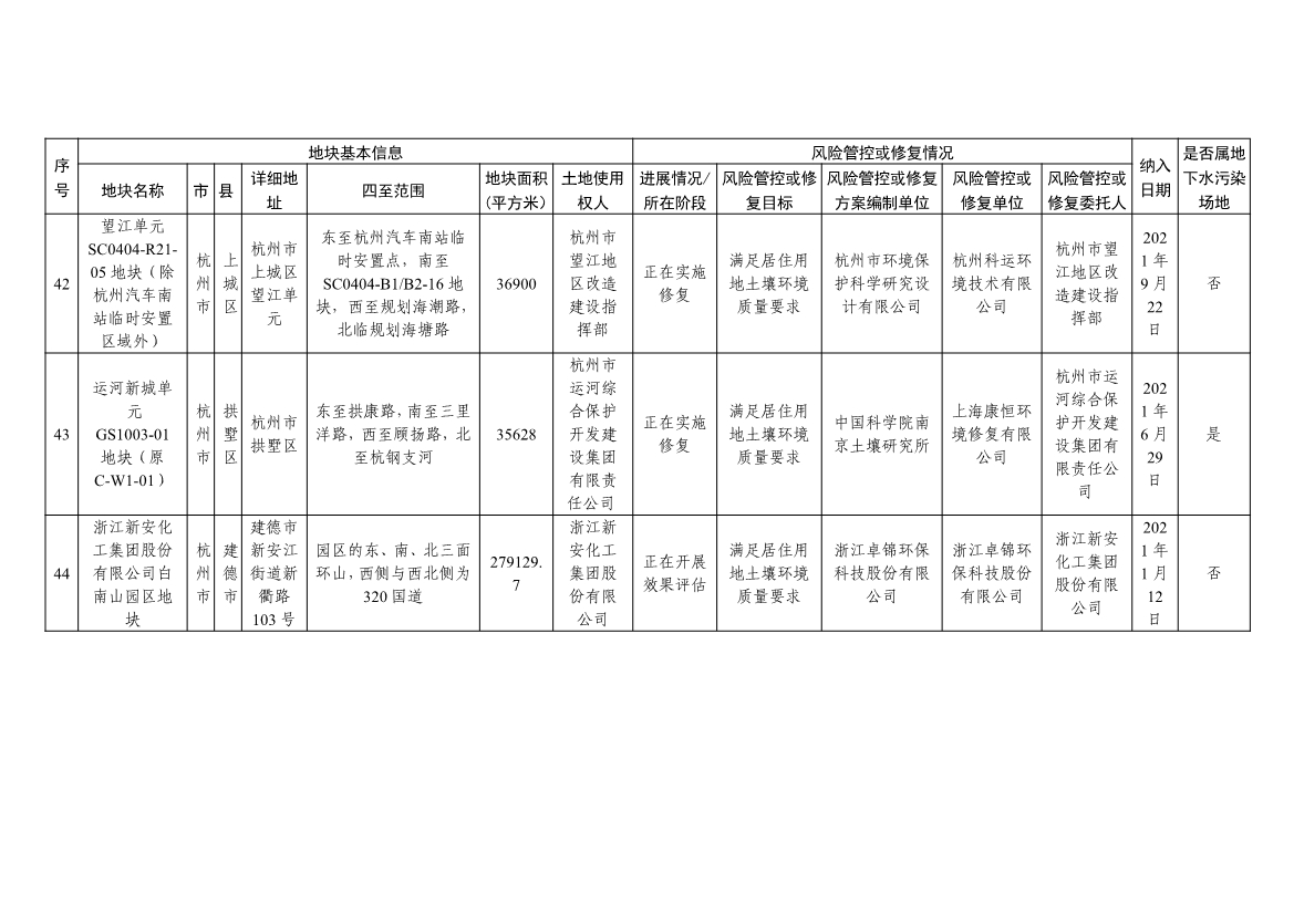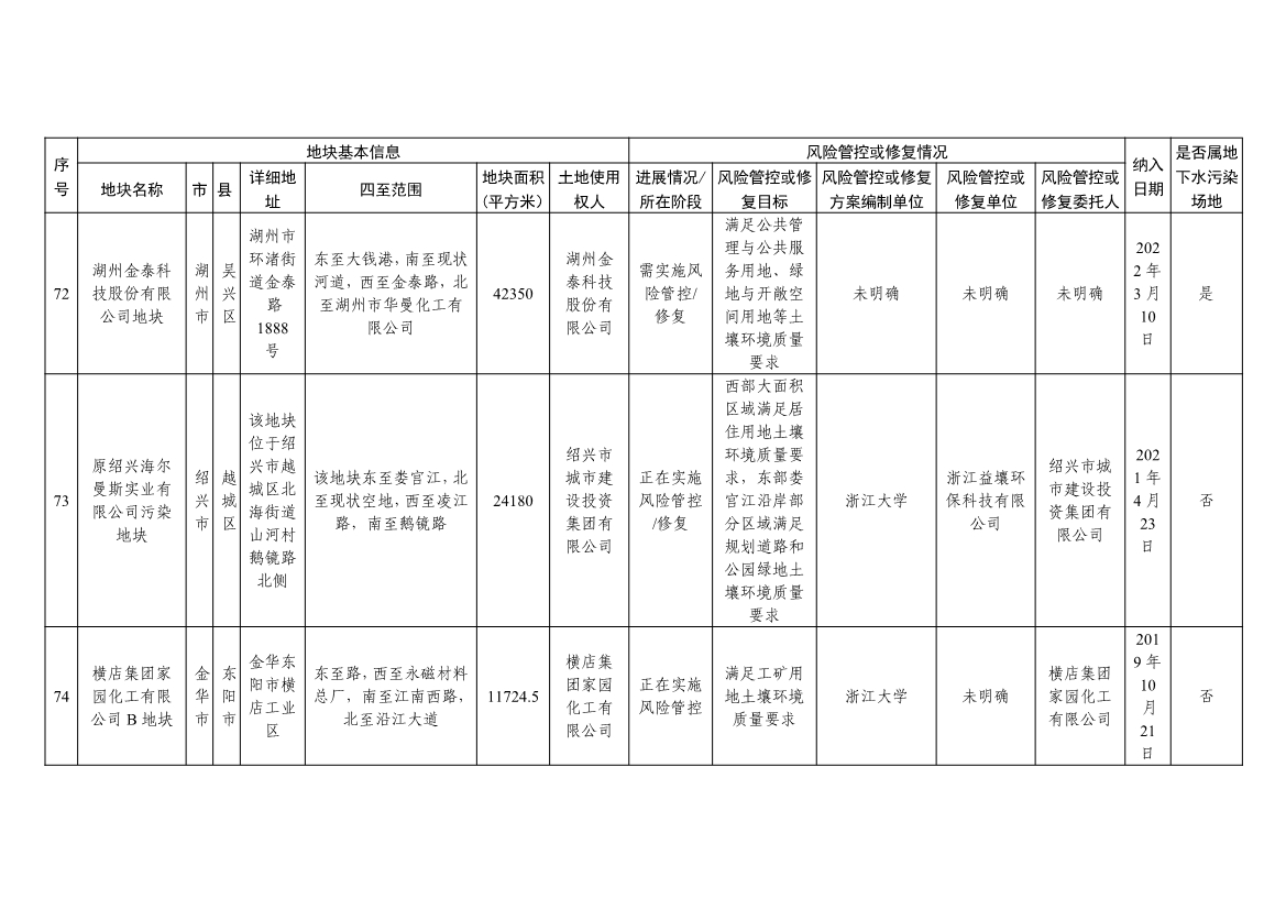 浙江省建设用地土壤污染风险管控和修复名录(含地下水污染场地)与浙江省建设用地土壤污染风险管控和修复名录移出清单已于2022年4月24日更新,详见附件。