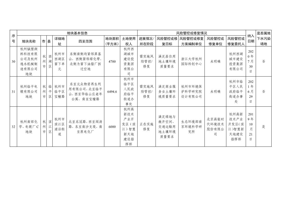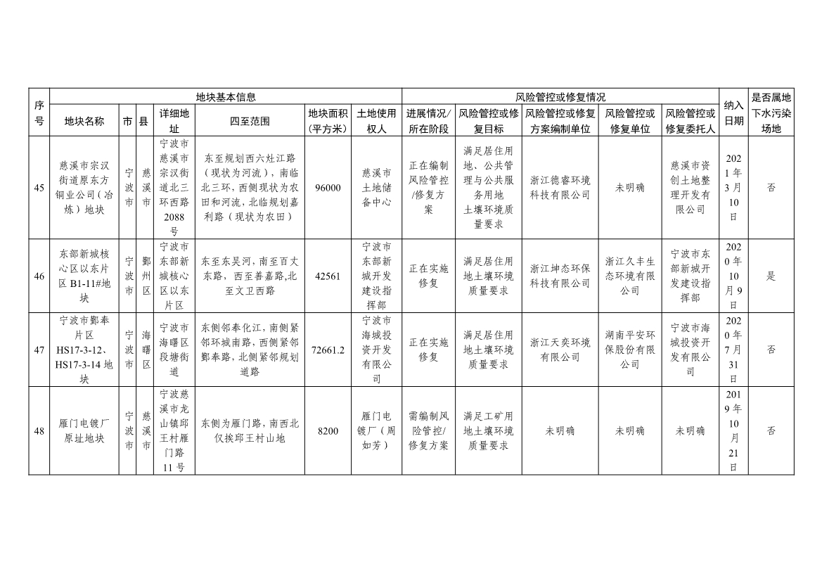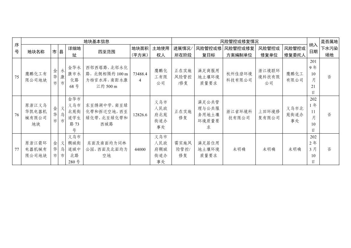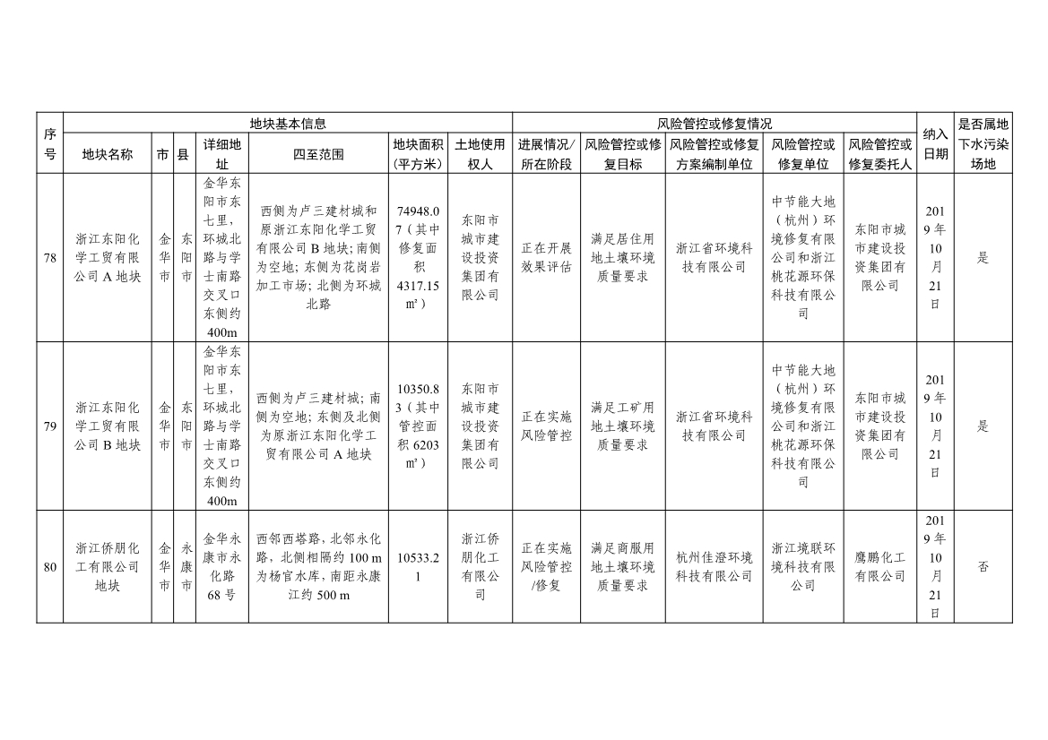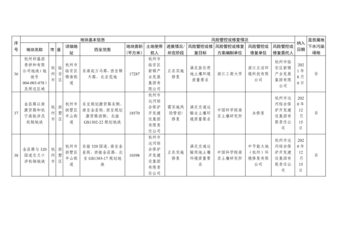 浙江省建设用地土壤污染风险管控和修复名录(含地下水污染场地)与浙江省建设用地土壤污染风险管控和修复名录移出清单已于2022年4月24日更新,详见附件。